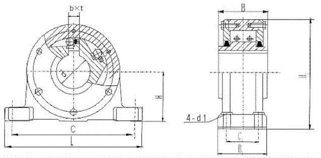 逆止器規格zui大逆止力矩(KN.m)孔徑(φdH7)BB1B2CLC1HH1Sb*td1重量(Kg)推薦配用減速機型號